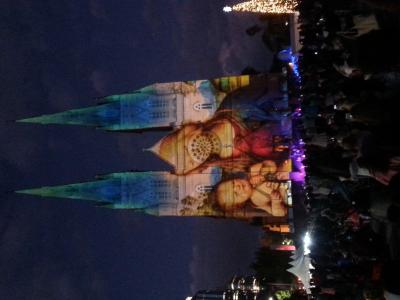 Am Abend haben wir dann Knödel mit Soße und ein Hähnchen gegessen. Nach dem hervorragendem essen sind wir dann Abend zu der nahegelegenden Kirche gegangen und haben dort das Lichterspielund Live Musik angehört.