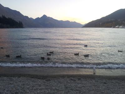 und das sind die Berge um Queenstown herum. Wir waren 4 Tage dort. Am letzen Abend haben wir dann noch den Sonnenuntergang am Strand angeschaut