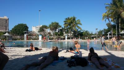 Ich bin jetzt seit 3 Wochen in Brisbane. Ich hab schon viele nette Leute kennen gelernt mit dene ich auch viel erlebe. Wir gehen in die Stadt und demletzt haben mir mit ein paar aus dem Hostel ein Barbecue gemacht. In der South Bank gibt es Barbecue Tische wo man nutzen und Grillen kann. Es war richtig witzig, wir haben gegrillt und ein paar Bier getrunken. Aber dann kam die Polizei und es gab ärger da man dort entweder nur bis 20.00 Uhr trinken darf oder garnicht. In Australien gibt es nur wenige Bereiche wo man in der Öffentlichkeit Alkohol trinken darf. Aber wir sind nur mit einer Verwarnung weg gekommen und Sie haben den ganzen Alkohol ausgeleert. Wir sind demletzt auch nacht in der Lagune also dem künstlich angelegten Strand in der Mitte gebadet. Ja wir haben hier im großen und ganzen super Wetter. schon warm. nur gestern bis morgen sol es schlecht sein. Für Australische Verhältnisse ist es auch kalt.